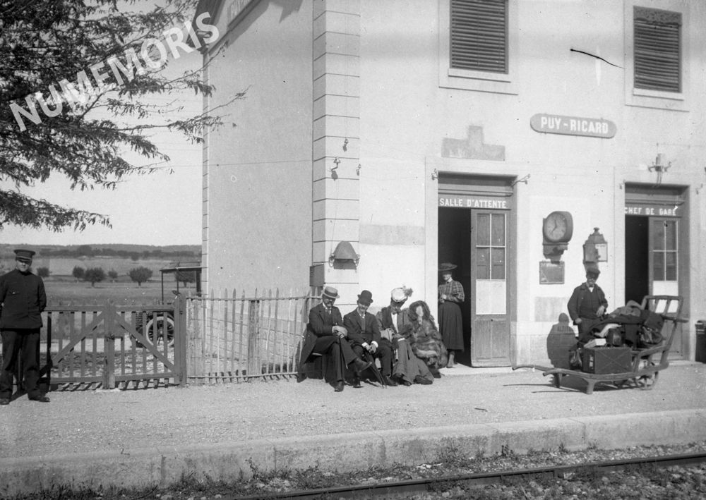 Quelques personnes attendent le passage du train.
