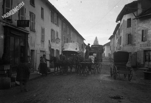 Rue principale du village en 1932. On distingue l'église Saint-Georges en arrière-plan avec les tilleuls qui venaient tout juste d'étre plantés.